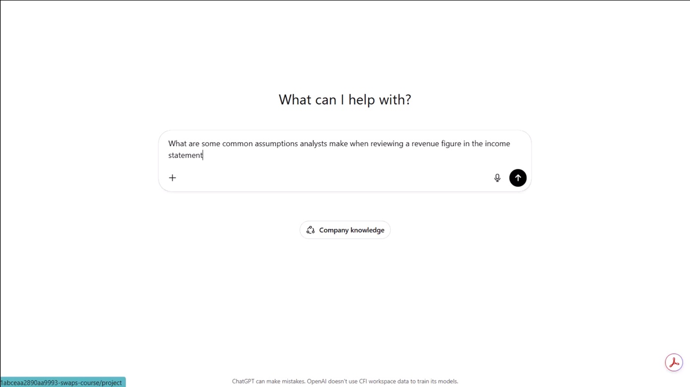 This practice lab teaches a structured approach to AI-assisted financial analysis. You’ll learn CFI’s CAP-AJ framework (Context, Assumption, Prompt, Assess, Judge), a methodology that ensures AI strengthens your analysis rather than replacing your professional judgment. Through hands-on practice with a realistic income statement scenario, you’ll apply this framework to test assumptions about revenue recognition, expense classification, one-off items, and timing, building a repeatable skill that transfers to any analytical domain, from equity research to credit analysis to M&A due diligence.