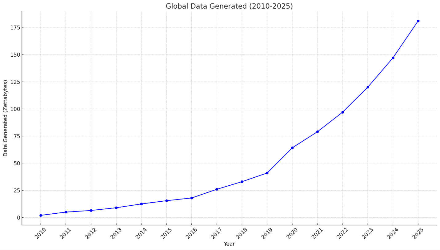 The exponential growth of data in the internet era has been staggering, with global data volume reaching over 120 zettabytes in 2022 (one zettabyte is equal to one billion terabytes).