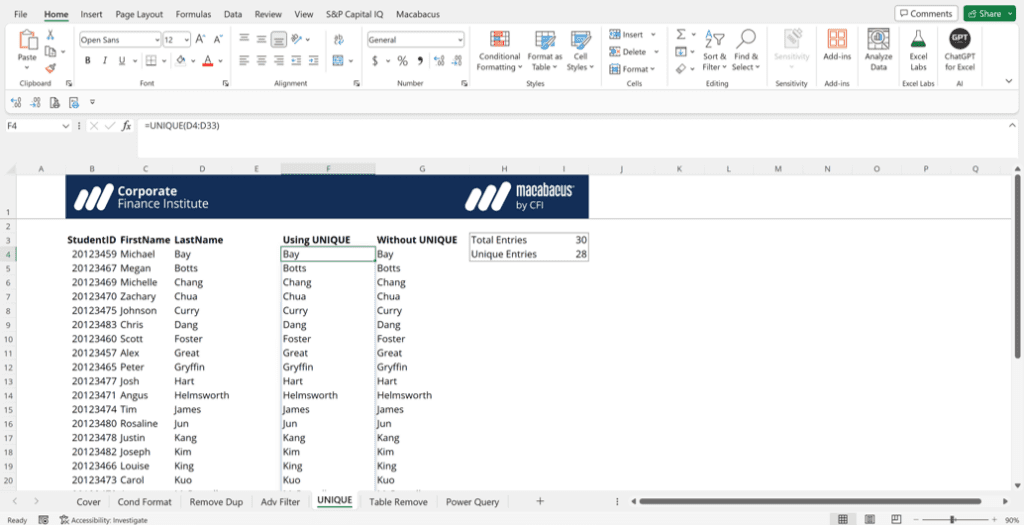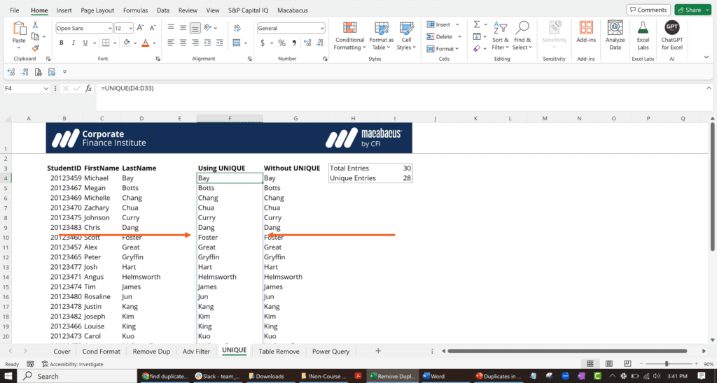 4. Remove Duplicates Using the UNIQUE Function