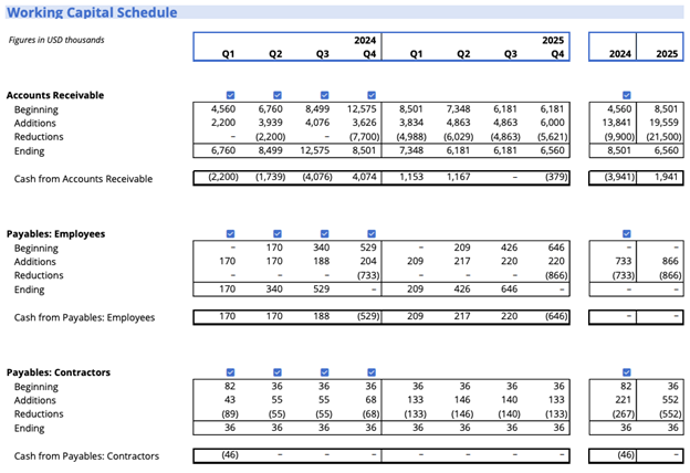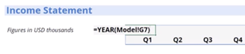 Link year references to your model tab’s date structure, using formulas that automatically update when the forecast rolls forward.