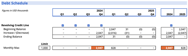 When dealing with debt schedules, particularly revolving credit facilities with established limits, you’ll often need to track the maximum utilization rather than the sum.