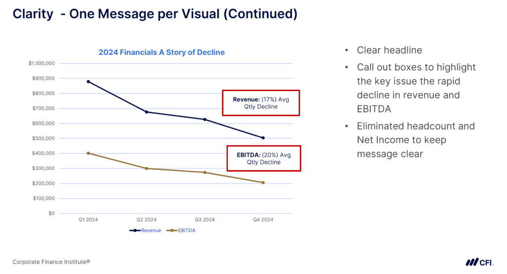 It’s easy to fall into the trap of overusing accounting terms, acronyms, or finance jargon that others don’t fully grasp the key message. The goal of FP&A storytelling is to be understood. Use plain language so everyone in your audience, regardless of finance expertise, understands your meaning.