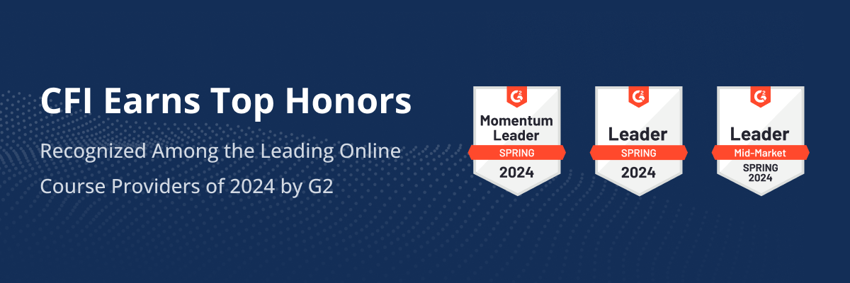 April 5, 2024 – We are thrilled to announce that G2 has recognized CFI as one of the top Online Course Providers of 2024. CFI ranks second among online course providers and has the highest satisfaction score among fellow category nominees.