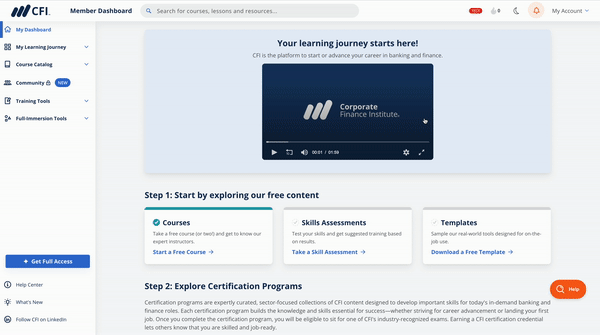 We’ve undertaken a comprehensive overhaul of the Free learner dashboard homepage. Our new design provides clear guidance on how to initiate the learning journey by starting with a free a course, skill assessment and templates, than choosing a certification program and finally discovering the benefits of Self-Study and Full-Immersion plans.